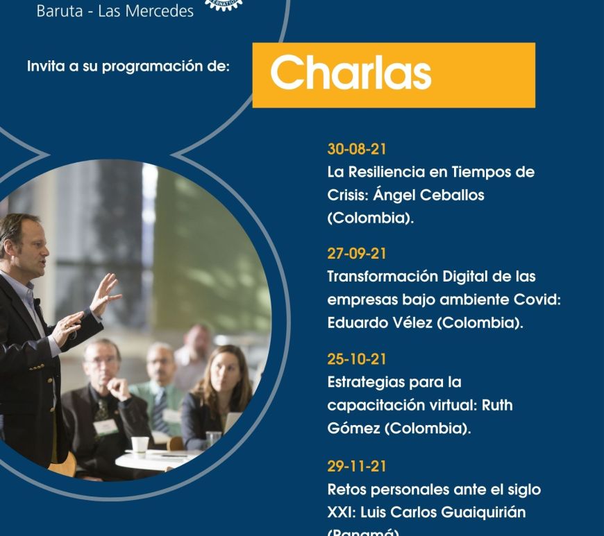 El Rotary Baruta-Las Mercedes, colaborando con la formación de sus miembros, los socios de otros clubes y el público en general, comienza su trabajo de organización de un interesante ciclo de charlas para el año 2021. Contando con la colaboración de destacados profesionales en diversas áreas, que desarrollan sus actividades empresariales en Colombia y Panamá, el Rotary Baruta-Las Mercedes publica su cronograma de eventos. Los … Continúa leyendo Rotary Baruta-Las Mercedes hace su programación de eventos para el 2021